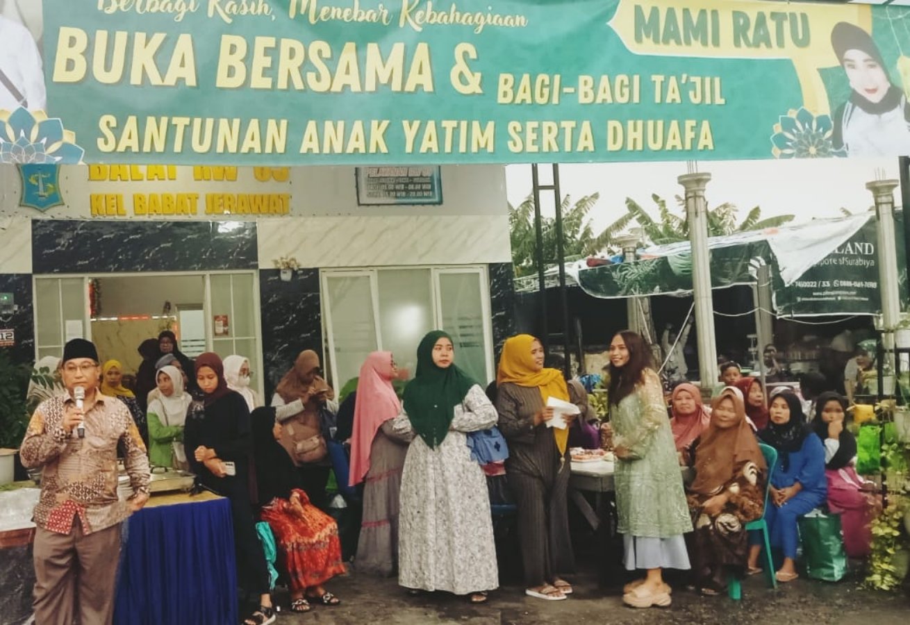 Dalam sambutannya, Mami Ratu HJ Istiyani yang juga menjabat sebagai Ketua RW 5 Babat Jerawat menyampaikan bahwa acara berbagi kasih ini merupakan agenda tahunan yang dilaksanakan setiap bulan Ramadhan. “Acara ini kami lakukan setiap tahun untuk mempererat silaturahmi antarwarga, serta sebagai wujud kepedulian kita kepada sesama muslim yang kurang mampu, anak yatim-piatu, dan kaum dhuafa. Kami juga berbagi takjil bagi pengguna jalan dan warga setempat sebagai bentuk kebaikan kecil yang semoga bermanfaat,” ujarnya.