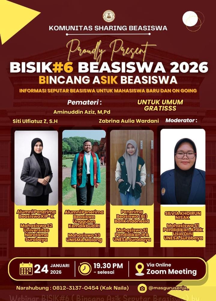 Di tengah dunia yang kian kompetitif dan tidak selalu adil dalam distribusi akses pendidikan, sebuah inisiatif berbasis komunitas di Indonesia justru tampil sebagai penanda arah baru peradaban pengetahuan. Komunitas Sharing Beasiswa (KSB) kembali menghadirkan BISIK #6 Beasiswa 2026 (Bincang Asik Beasiswa), sebuah forum edukatif yang melampaui sekadar seminar daring, dan menjelma menjadi ruang produksi kesadaran intelektual generasi muda.