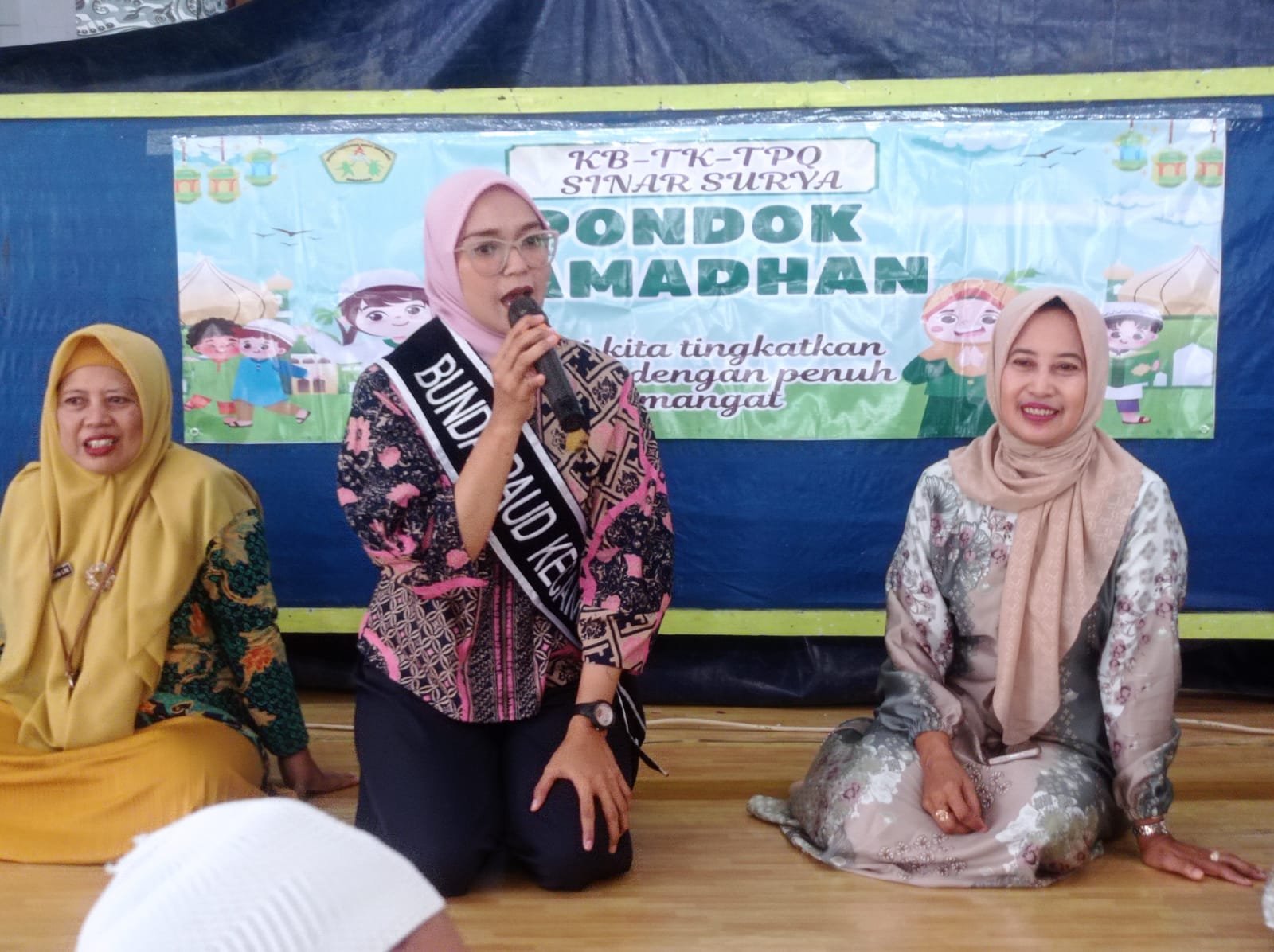 Sementara itu, Ibu Aprilia Ayu Nilawati dalam sambutannya mengapresiasi penuh upaya KB, TK, TPQ Sinar Surya dalam mengadakan kegiatan keislaman seperti Pondok Ramadhan. Menurutnya, kegiatan ini merupakan bentuk yang baik untuk mendidik anak usia dini tentang keimanan dan akhlak, serta bisa menjadi contoh bagi sekolah-sekolah lain di wilayah Kecamatan Pakal. Selama acara, ia juga memberikan kesempatan bagi anak-anak untuk berani tampil di depan umum dengan mengajukan pertanyaan tentang doa puasa, serta bertanya mengenai nama dan cita-cita masing-masing peserta. Ibu Aprilia juga menyampaikan bahwa pihaknya sedang merencanakan program khusus (supers) untuk KB dan TK di Kecamatan Pakal, namun detailnya masih dirahasiakan dan akan diumumkan pada waktu yang tepat.