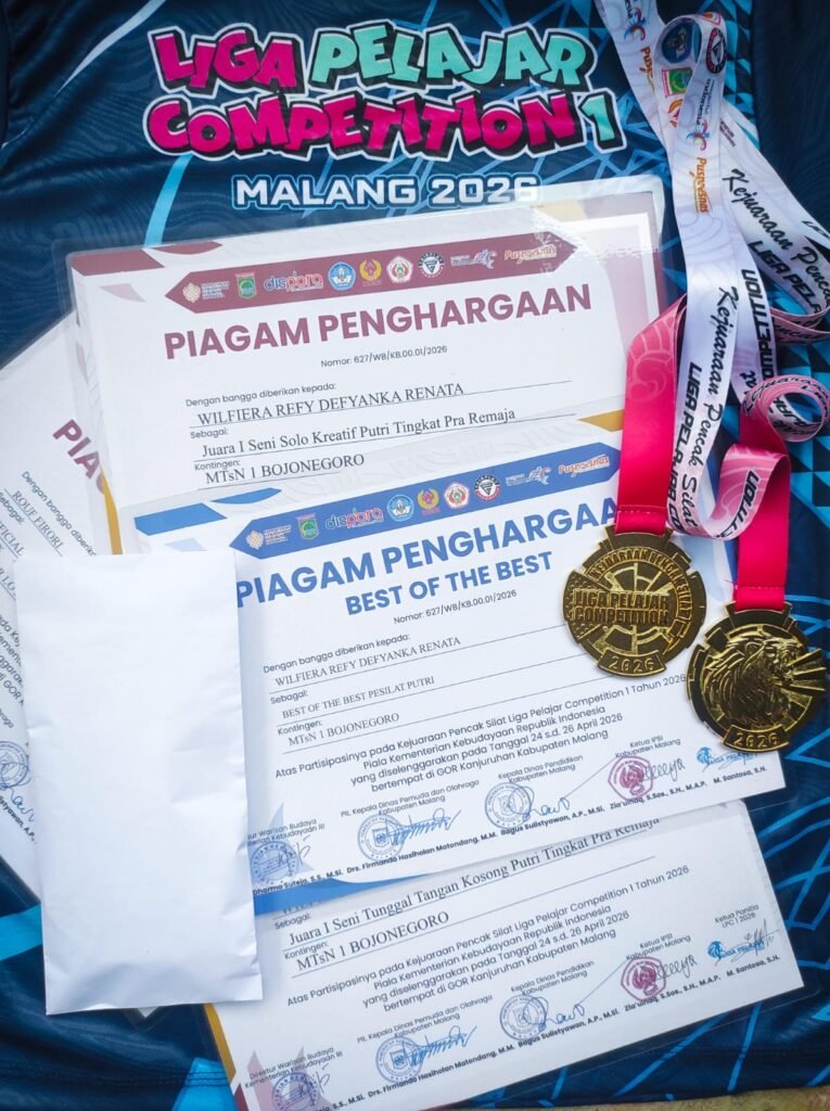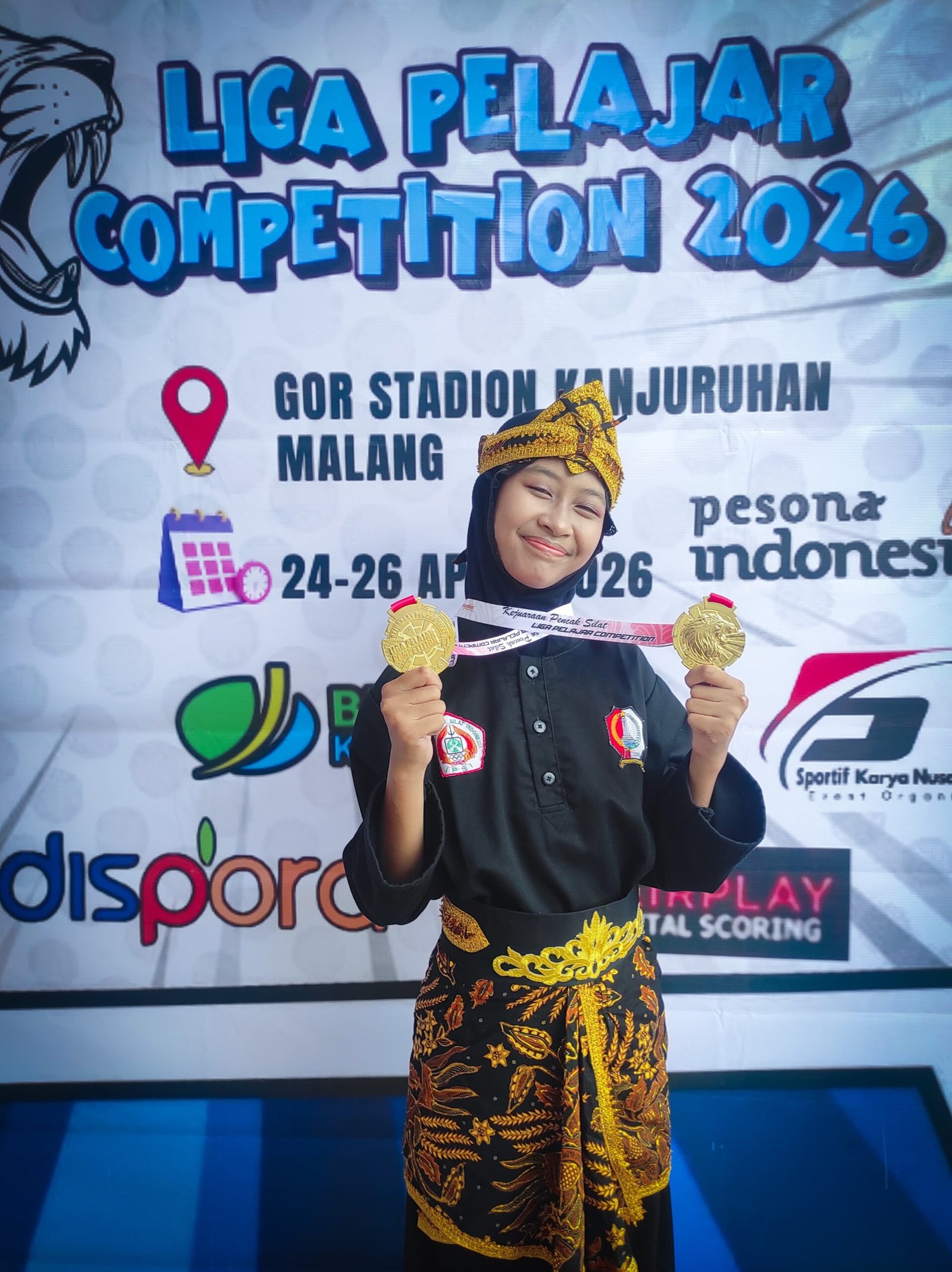 Siswi kelas 7D MTsN 1 Bojonegoro itu mencatatkan capaian yang jarang terjadi dalam satu kompetisi. Pada ajang Liga Pelajar Competition 2026 di Malang, 24–26 April 2026, ia tidak hanya menang, ia mendominasi.