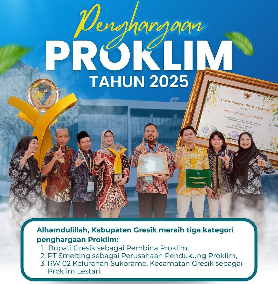 Kabupaten Gresik mencatat sejumlah capaian di bidang lingkungan hidup sepanjang 2025. Melalui Dinas Lingkungan Hidup (DLH), berbagai penghargaan diraih lintas sektor, mulai dari pendidikan, komunitas masyarakat, pesantren, hingga pemerintahan desa. Capaian tersebut mencerminkan penerapan kebijakan lingkungan yang berbasis perencanaan, kolaborasi, dan pendekatan ilmiah.
