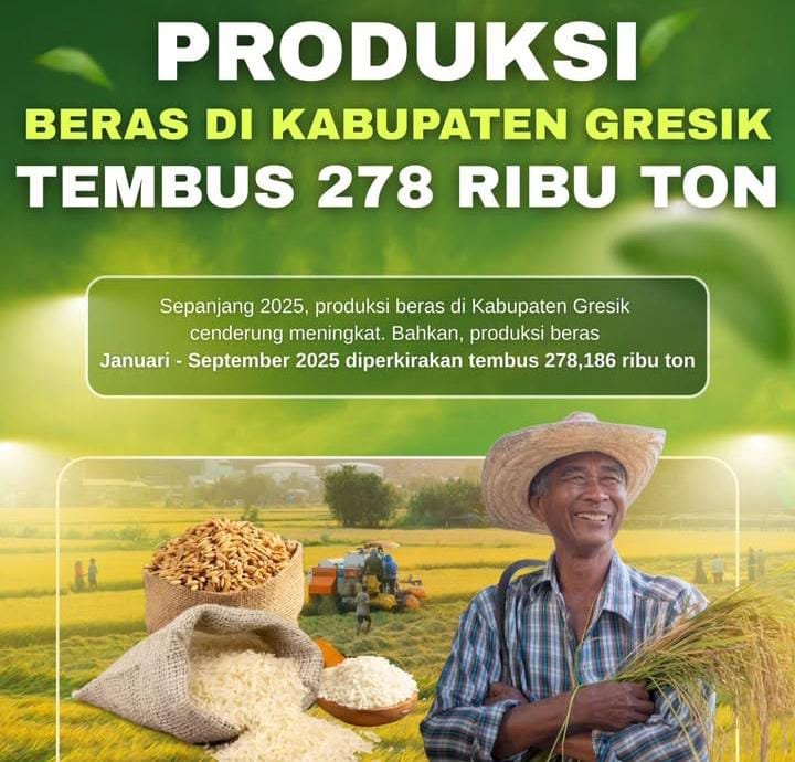 Hasil produksi beras sebesar 278 ribu ton bukan sekadar angka, melainkan simbol keberlanjutan ekonomi pedesaan. Dengan meningkatnya produksi, kesejahteraan petani pun ikut terdongkrak, menegaskan bahwa sektor pertanian tetap menjadi tulang punggung ketahanan pangan dan ekonomi Gresik.