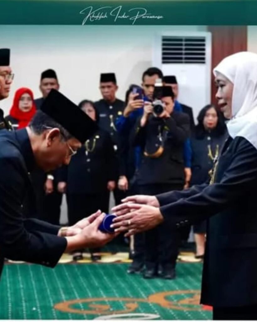 Surabaya, Media Pojok Nasional – Gubernur Jawa Timur, Khofifah Indar Parawansa, hari ini melantik dan mengambil sumpah serta janji jabatan kepada 134 kepala SMA, SMK, dan SLB negeri se-Jawa Timur. Acara pelantikan berlangsung khidmat di Gedung Negara Grahadi, Surabaya, dihadiri oleh sejumlah pejabat tinggi provinsi, perwakilan dari Dinas Pendidikan, serta para undangan lainnya. 25 Nobember 2025.