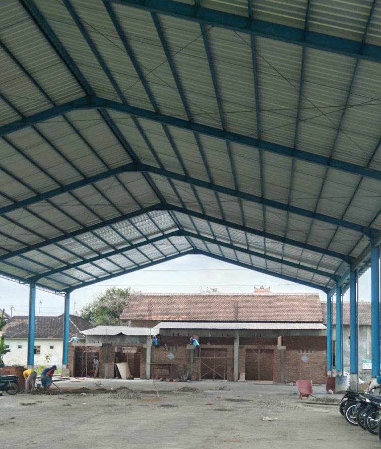 Fakta di lapangan menunjukkan kondisi berbeda. Dinding keliling belum terbangun, lantai masih berupa rabat kasar, dan elemen utilitas belum terlihat. Secara teknis, capaian ini masih dalam kategori struktur parsial, dengan estimasi progres fisik berada di kisaran 55 hingga 65 persen.