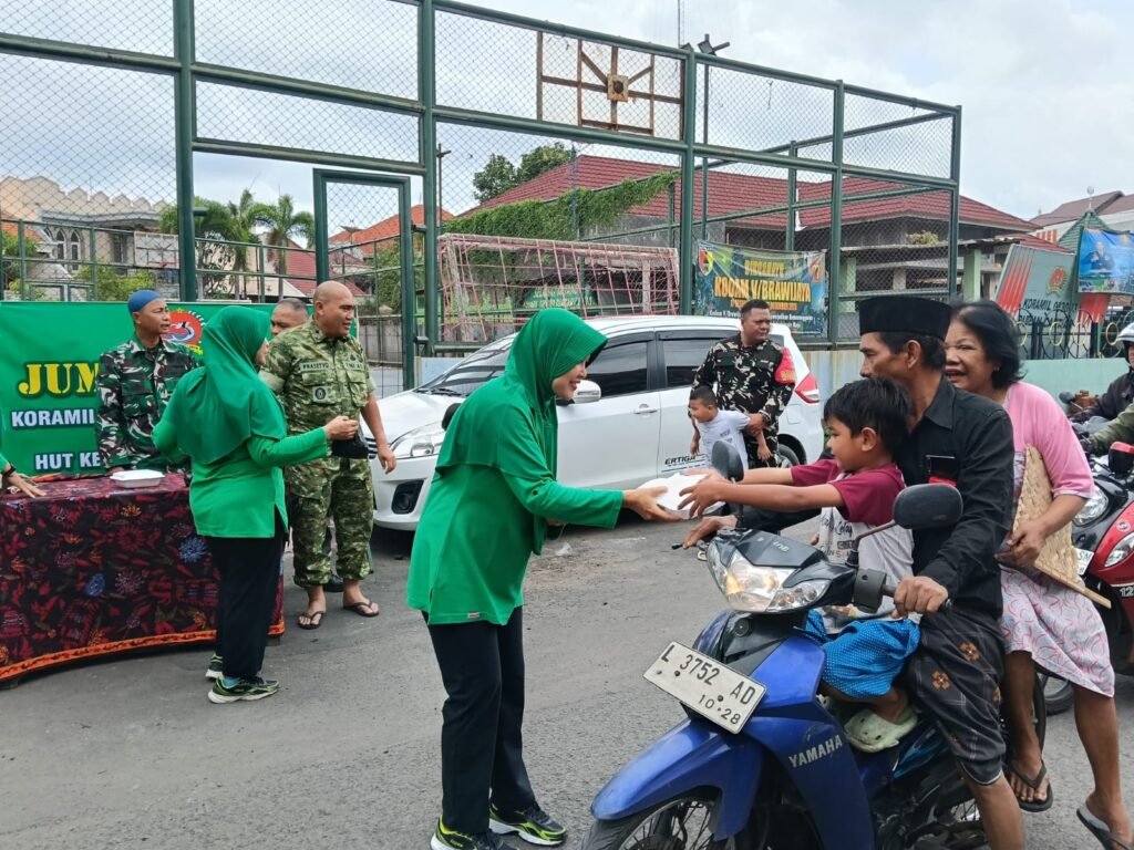 Surabaya, Media Pojok Nasional Dalam rangka memperingati Hari Ulang Tahun (HUT) ke-1 Tahun 2026 Kodim 0830/Surabaya, Kodim 0830/Surabaya melalui Koramil 0830-03/Pabean Cantian melaksanakan kegiatan sosial Jum’at Berkah berupa pembagian nasi bungkus kepada masyarakat.