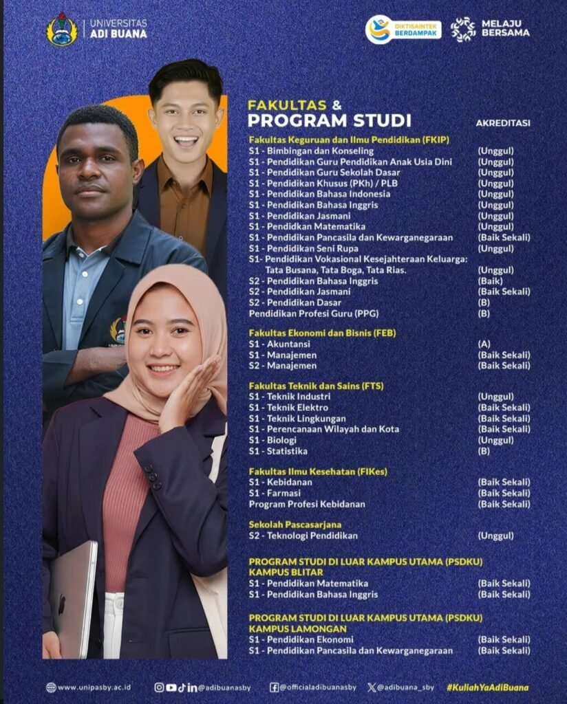 Surabaya,Media Pojok Nasional – Di tengah disparitas akses pendidikan tinggi dan tekanan ekonomi keluarga kelas menengah-bawah, Universitas Adi Buana Surabaya meluncurkan kampanye penerimaan mahasiswa baru bertajuk “Kamu Pasti Eligible.” Dalam konteks pendidikan tinggi, istilah eligible berarti memenuhi ketentuan DIKTI, bukan sekadar jargon promosi. Pesan ini menegaskan prinsip ideologis: pendidikan tinggi adalah hak yang dapat dijangkau secara rasional dan terstruktur, bukan ruang eksklusif bagi segelintir orang.