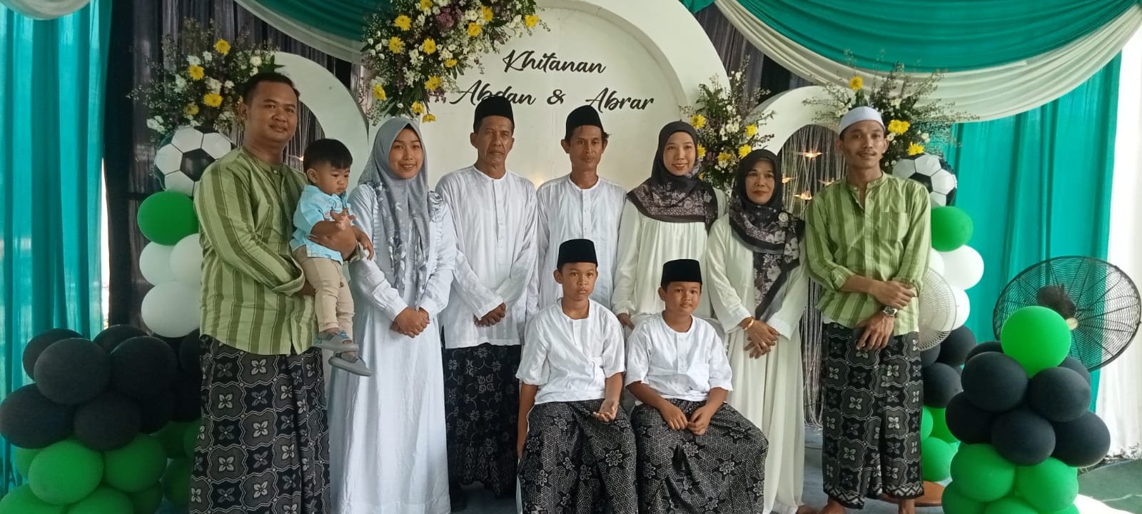 Surabaya, Media Pojok Nasional – Kecintaan terhadap klub kebanggaan kota Pahlawan, Persebaya Surabaya, diwujudkan secara luar biasa dalam acara sunatan dua bersaudara, Muhammad Abdan Syadid dan Muhammad Abrar Syathir. Seluruh rangkaian acara yang digelar di kediaman mereka, Jalan Tambak Langon (Branjangan), Gang VII No. 21 A, Kelurahan Tambak Sarioso, Kecamatan Asemrowo, Surabaya, benar-benar didominasi oleh warna hijau khas Bonek, mulai dari dekorasi tenda hingga busana para tamu undangan.