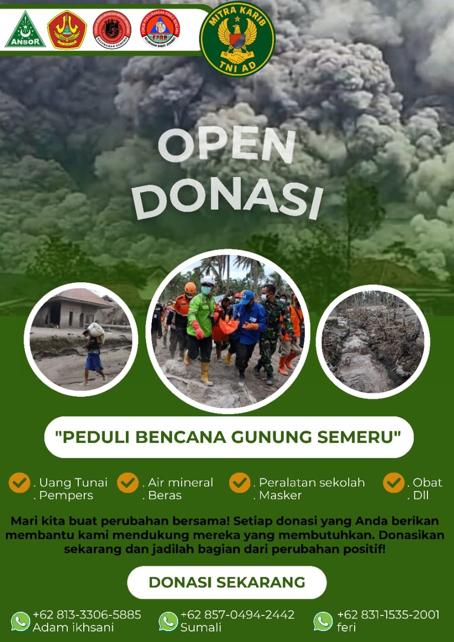 “Bantuan sekecil apa pun sangat berarti bagi mereka yang sedang menghadapi masa sulit. Kami memastikan seluruh donasi akan disalurkan secara tepat sasaran melalui jalur resmi. Mari kita bantu Semeru dengan hati,” ungkapnya.