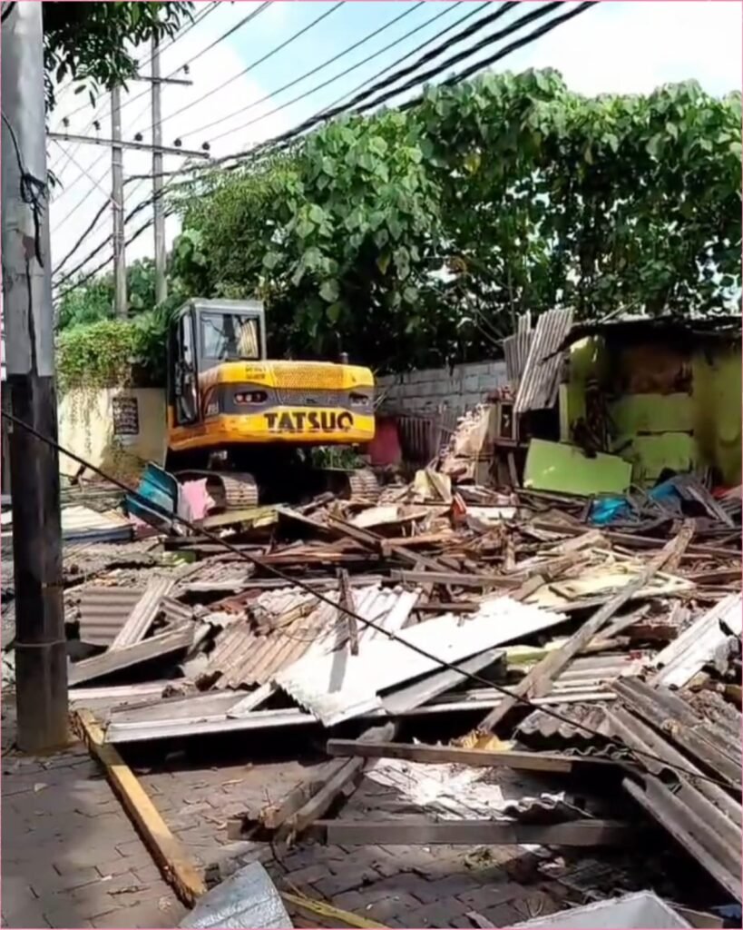 Pembongkaran dilakukan karena bangunan-bangunan tersebut tidak memiliki izin resmi dan berdiri di atas saluran air yang seharusnya berfungsi sebagai drainase. Hal ini menjadi penyebab utama penyumbatan aliran air, yang setiap kali hujan deras menyebabkan limpahan air dan merendam permukiman warga sekitar, sehingga menimbulkan masalah banjir tahunan yang sudah berlangsung cukup lama .
