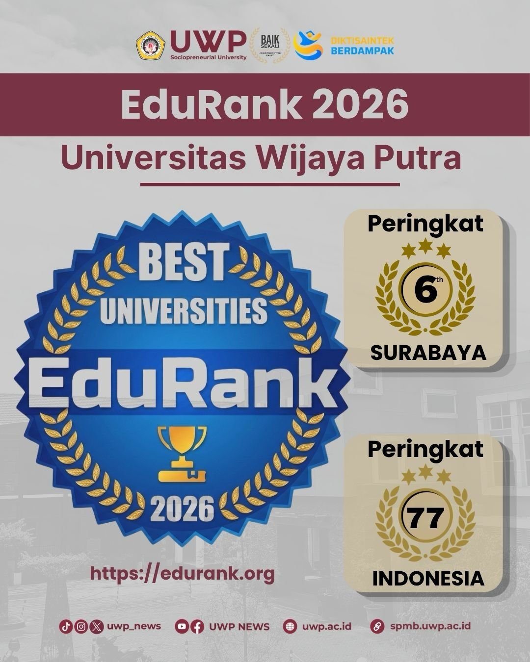Pencapaian ini dirilis langsung oleh EduRank (edurank.org), sebuah lembaga pemeringkatan global independen yang dikenal dengan pendekatannya yang berbasis data dan transparan dalam menilai kinerja institusi pendidikan tinggi di seluruh dunia. Dalam rilis resmi untuk tahun 2026, UWP berhasil menempati posisi ke-6 dari 27 universitas yang dianalisis di Surabaya, serta berada di peringkat ke-77 tingkat nasional dan 5.358 di level global.