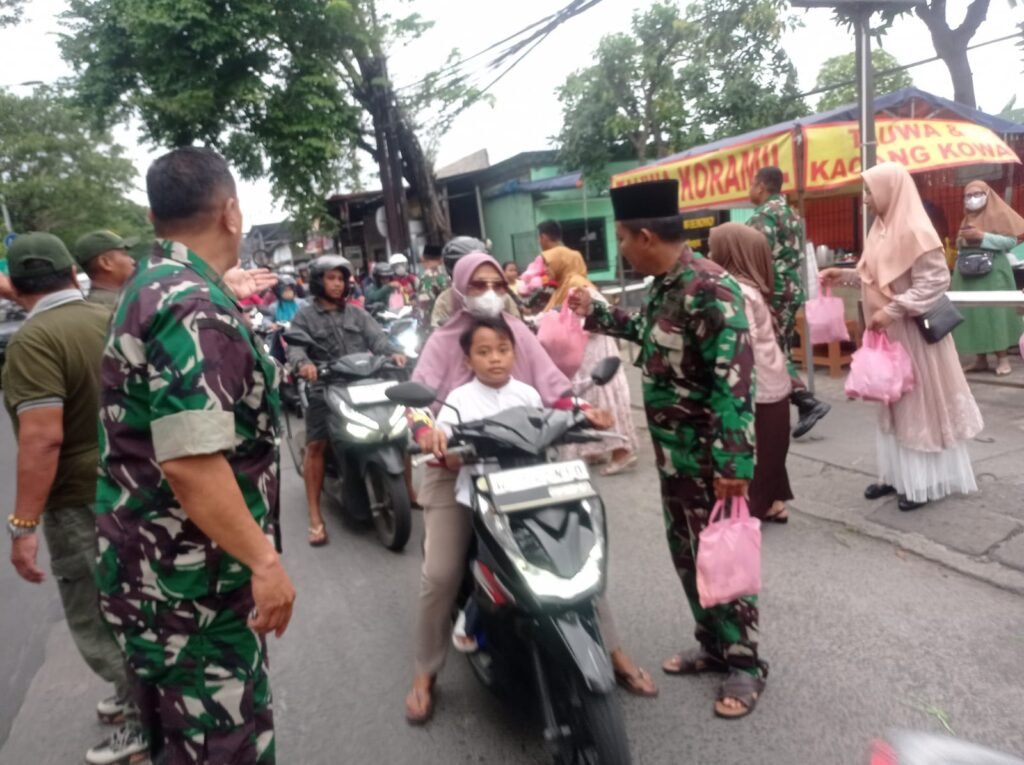 Surabaya, Media Pojok Nasional – Persit Koramil 0830/06 Benowo menggelar kegiatan bagi takjil untuk pengguna jalan pada hari Kamis, 5 Maret 2026 pukul 16.30 WIB. Kegiatan yang mengambil tema “Mari Bersama-Sama Berbagi Kebahagiaan dan Kebaikan di Bulan Puasa Ramadhan yang Penuh Berkah Ini” berlangsung di depan Koramil 0830/06 Benowo, Jalan Sememi, Kelurahan Sememi, Kecamatan Benowo, Surabaya.