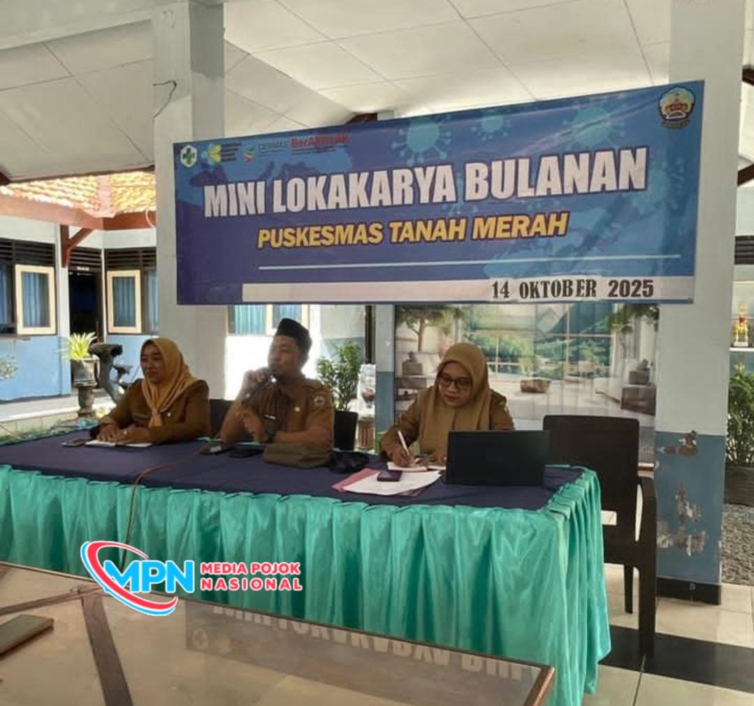 Bangkalan, Media Pojok Nasional — Puskesmas Tanah Merah menggelar kegiatan Lokakarya Mini (Lokmin) yang diikuti oleh seluruh staf dan tenaga kesehatan, Selasa (14/10). Kegiatan ini difokuskan pada evaluasi pelayanan Upaya Kesehatan Perorangan (UKP) dan Upaya Kesehatan Masyarakat (UKM), sekaligus membahas rencana program-program kesehatan ke depan, termasuk persiapan pelaksanaan tes kesehatan calon jamaah haji tahun mendatang.