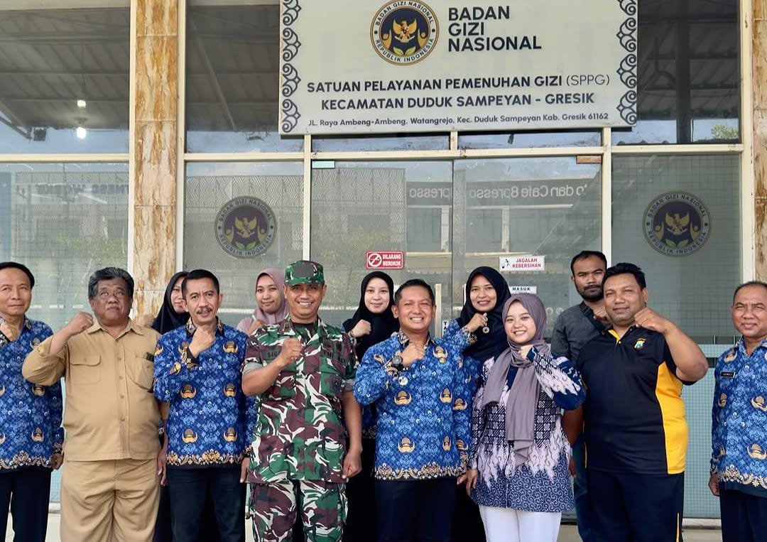 Gresik, Media Pojok Nasional – Forkopimcam Duduksampeyan bersama PLKB, Puskesmas, dan pemerintah Desa Ambeng-Ambeng Watangrejo melakukan peninjauan langsung ke Satuan Pelayanan Pemenuhan Gizi (SPPG) pada Jumat, 17 Oktober 2025. Langkah ini menjadi bagian dari pengawalan pelaksanaan program Makan Bergizi Gratis (MBG) agar berjalan tepat sasaran dan efektif.