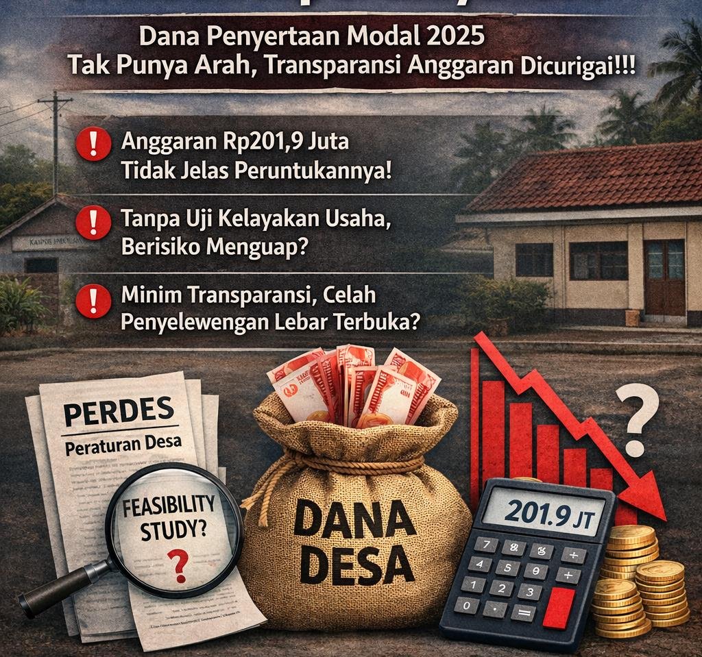 Penyertaan modal dari Dana Desa Tahun Anggaran 2025 sebesar Rp201.900.000 di Desa Jombok, Kecamatan Ngoro, Kabupaten Jombang, kini berada dalam sorotan tajam. Secara administratif tercatat dalam APBDes, namun substansi penggunaannya belum terang.