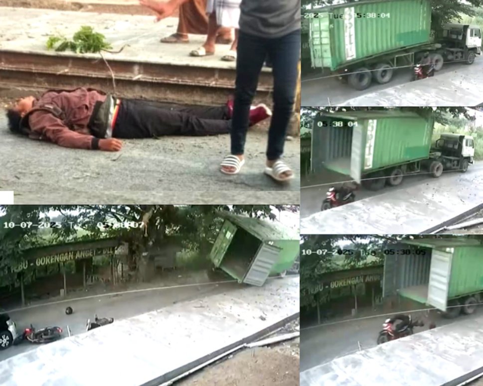 Peristiwa yang terjadi pada Selasa, 7 Oktober 2025 itu bermula ketika kendaraan kontainer yang dikemudikan oleh sopir berjulukan Udin melintas dari arah timur menuju barat di area proyek rabat beton yang masih dalam tahap pengerjaan.