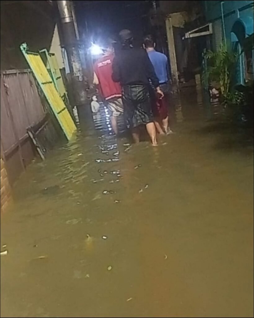 Surabaya, Media Pojok Nasional – Permukiman warga di Tambak Langon (Branjangan), Kelurahan Tambak Sarioso, Kecamatan Asemrowo, Surabaya, terendam banjir sejak Minggu malam (15/2/2026) hingga Senin siang (16/2/2026). Ketinggian air mencapai lutut orang dewasa, menghambat aktivitas warga dan akses lalu lintas di kawasan tersebut.