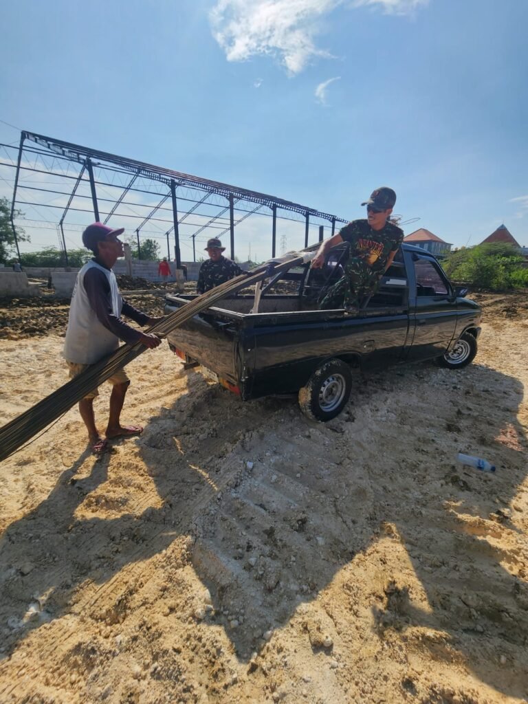 Dukungan terhadap pembangunan ini juga datang dari unsur kewilayahan. Danramil 0817/11 Duduksampeyan, Kapten Inf Prayit Handoko, bahkan turun langsung mengirim material, menunjukkan sinergi nyata antara pemerintah desa dan TNI dalam mendorong percepatan pembangunan yang berdampak langsung bagi masyarakat.