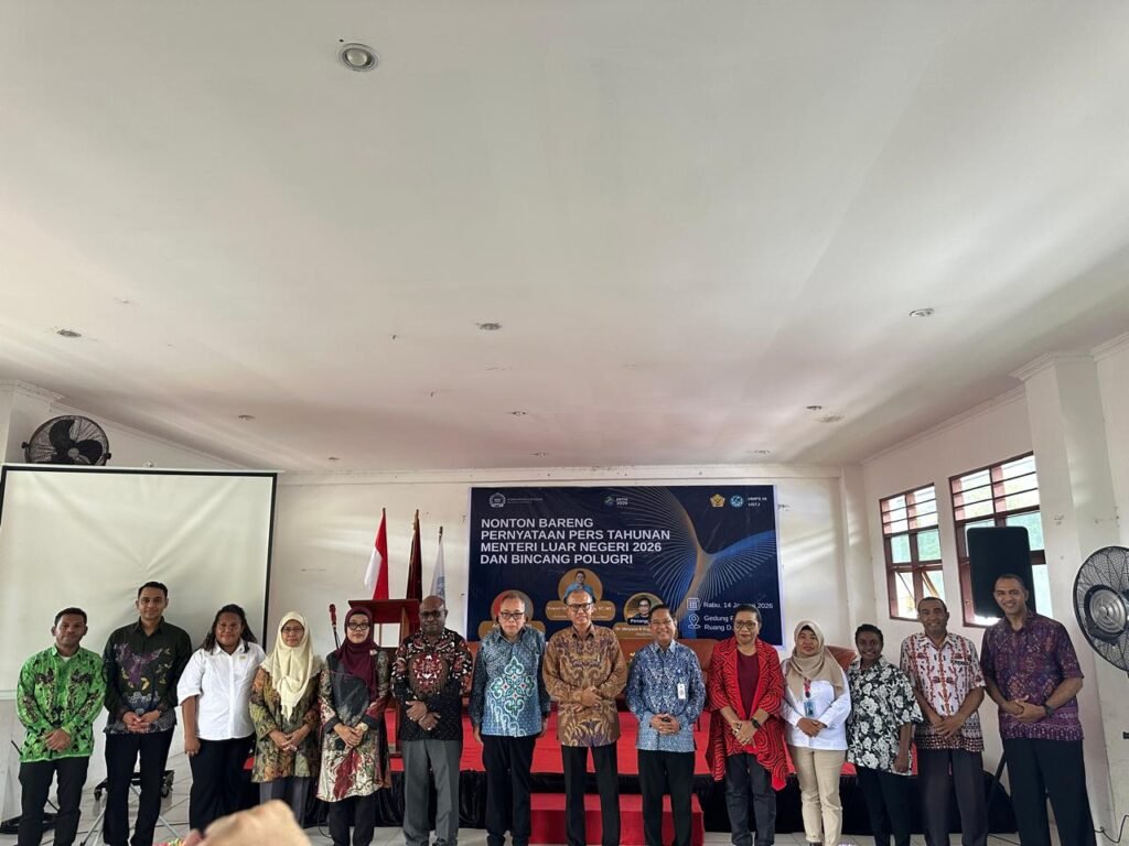 Papua, Media Pojok Nasional – Universitas Sains dan Teknologi Jayapura USTJ) menjadi salah satu dari 9 Perguruan Tinggi se-Indonesia yang diberikan kepercayaan oleh Kementerian Luar Negeri RI (Kemlu RI) sebagai tempat berlangsungnya Nonton Bareng Pernyataan Pers Tahunan Menteri Luar Negeri (PPTM) 2026 dan Bincang Politik Luar Negeri. Kegiatan berlangsung hari rabu, 14 Januari 2026 di Ruang D5, Gedung FTIK USTJ Lantai III USTJ. Kegiatan dibuka secara resmi oleh Dr. Suyatno, MT selaku Wakil Rektor I USTJ dan Bapak Acep Somantri selaku Staf Ahli Menteri Luar Negeri Bidang Manajemen.